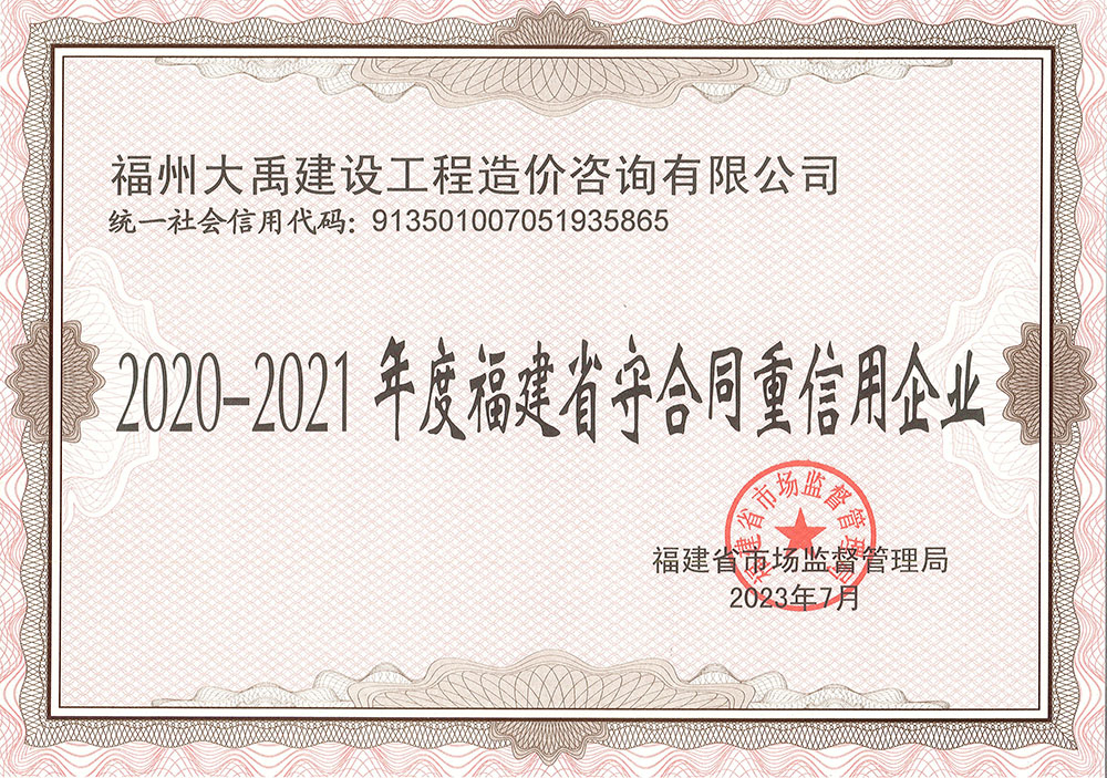 自2001年以来,大禹公司连续获得省市“守合同重信用企业”称号、中价协信用AAA企业、省级工商信用AAA优异经营户称号、省建设厅招标代理及造价咨询AAA信用企业等荣誉。